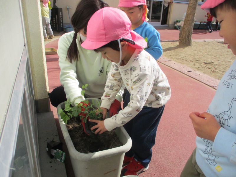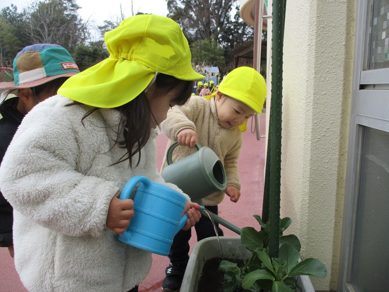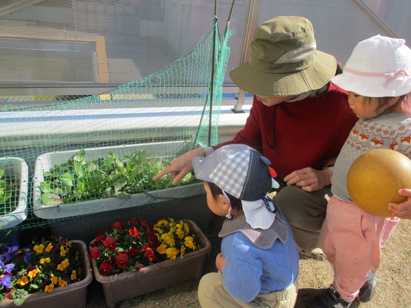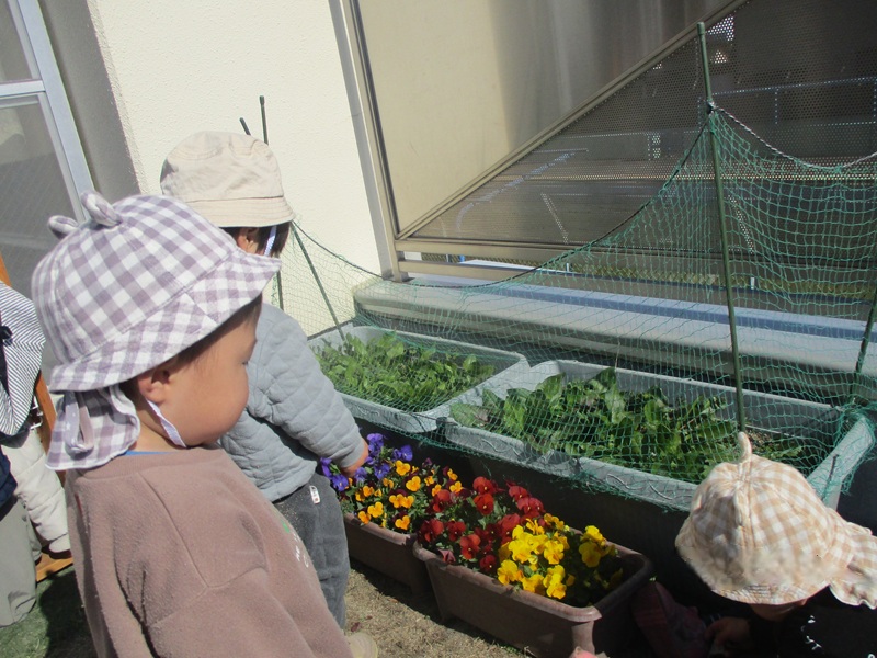 - もも組(0歳児) お花とほうれん草を育ててます