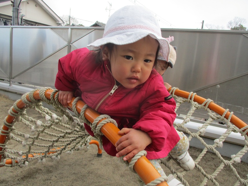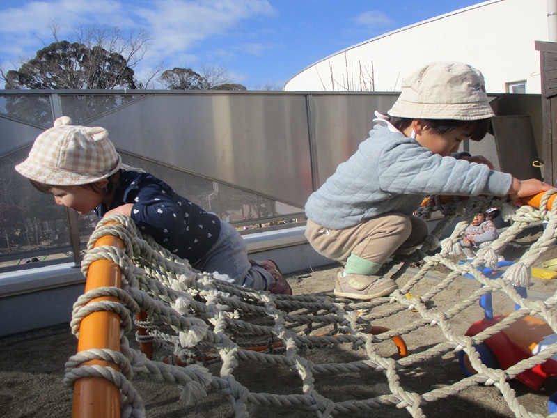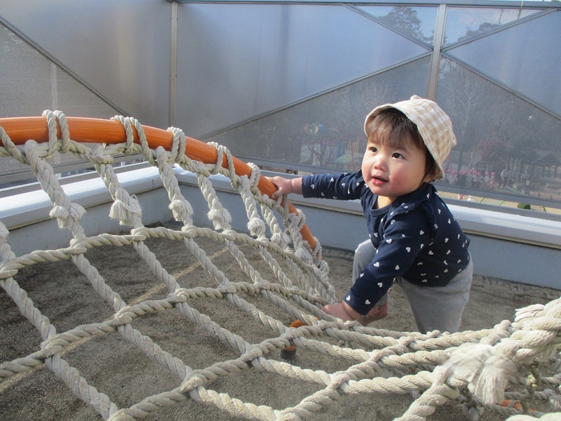 - もも組(0歳児) 網太鼓橋にチャレンジ!