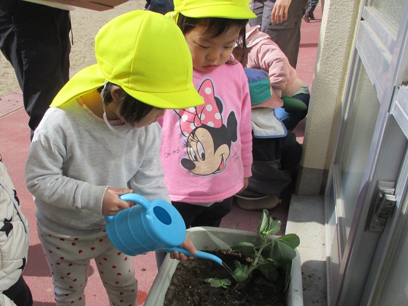 「大きくなってね」と優しく声かけながら、水やりもしてくれていました。