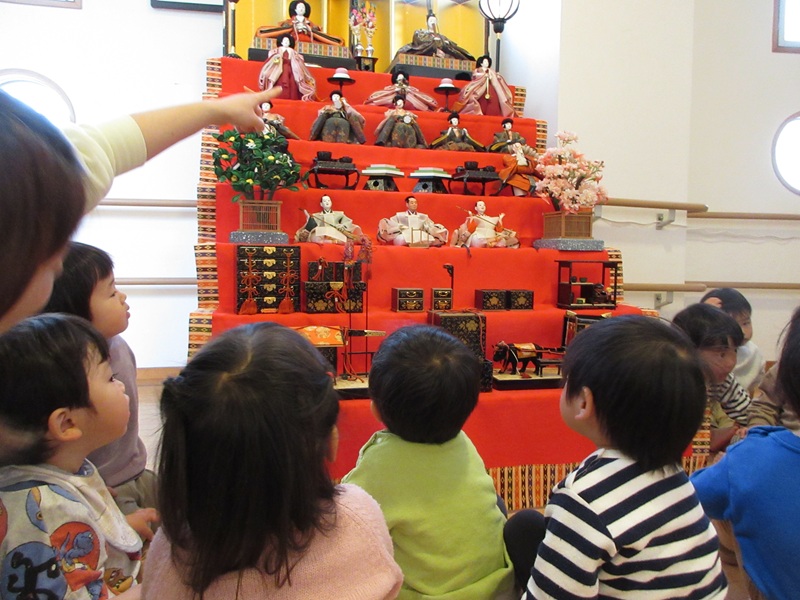 - 待ちに待ったひなまつり当日がやってきました。雛飾りの前で「うれしいひなまつり」を歌ったり、お茶席でお茶とお菓子をいただいたり…それぞれのクラスでひなまつりの雰囲気を楽しんでいました。給食にはちらしずしを、おやつにはひなまつりゼリーとひなあられ等をいただきました。