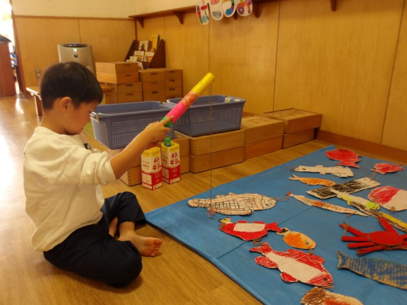 - くせまつりの準備が整ってきています。看板の文字を塗ったり、自分たちで遊びながらお客さんが交代をするタイミングや遊び方を相談しています。「くせまつり明日やんな?」と言いながら楽しみにしている子どもたちです。