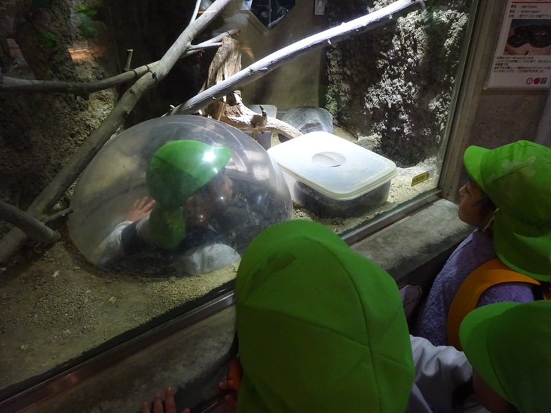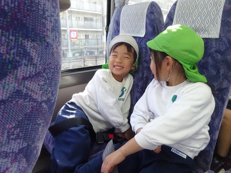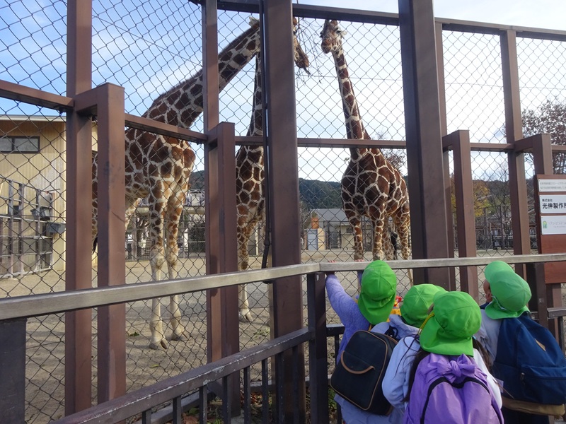 - 「ニシゴリラに会うの楽しみ」「ミライって言う名前のキリンもいるって」と、ワクワクしながらのバス。グループに分かれマップを頼りに、会いたい動物を目指し出発。間近で見る動物に「うわ~!!」と感動。お父さん、お母さんが作ってくれたお弁当を食べて、もう一度会いたい動物に「またね~」と手を振り帰ってきました。