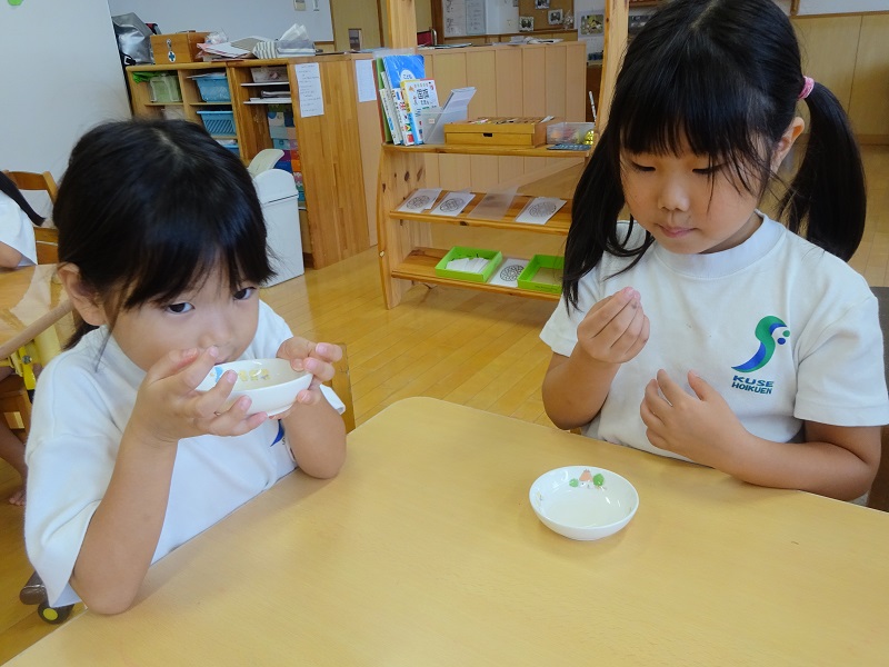 - ゆり組(5歳児)だし汁を味わう
